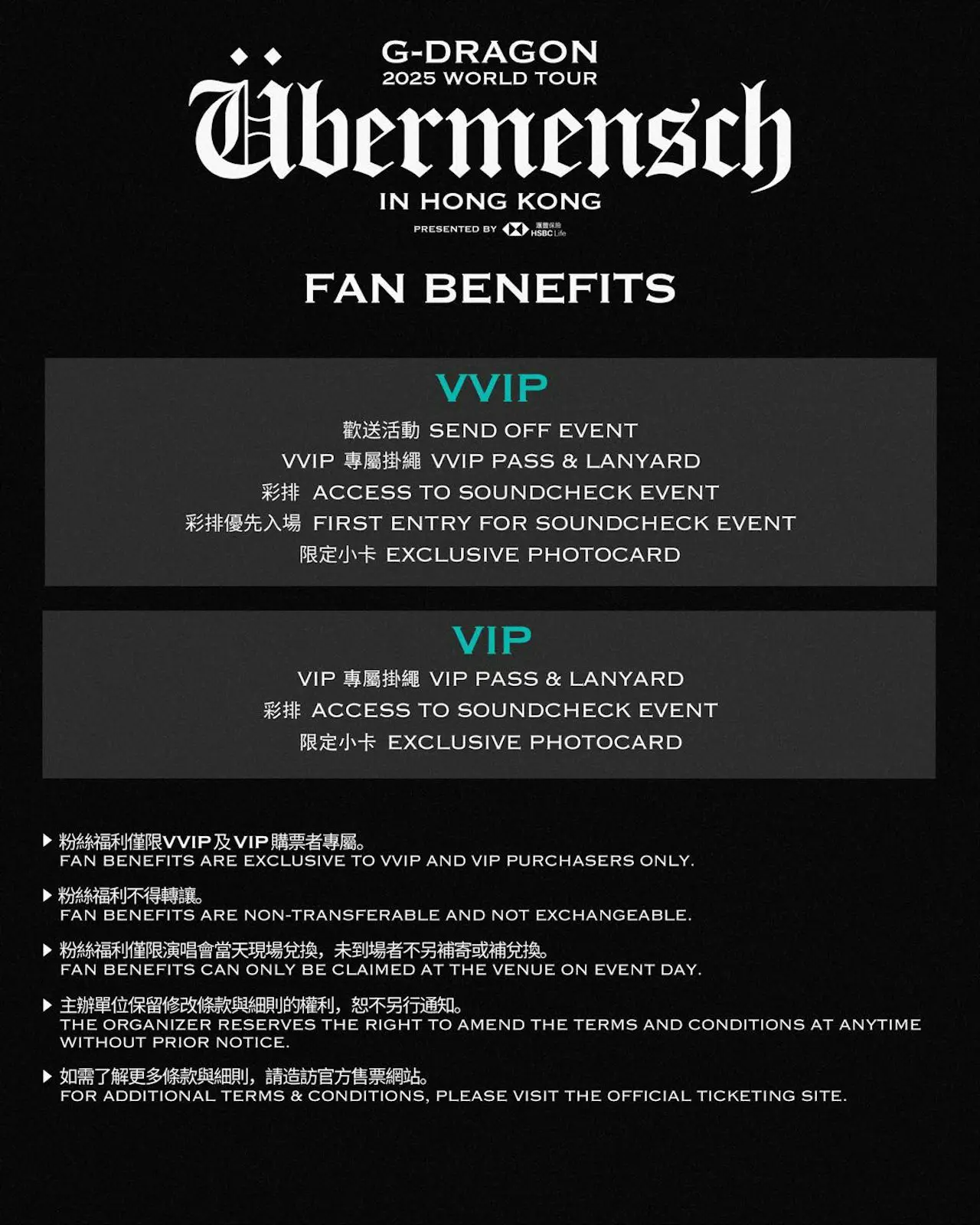 | G-Dragon權志龍香港演唱會2025|G-Dragon權志龍2025 WORLD TOUR [Übermensch] 25週年巡迴演唱會 香港站 | |